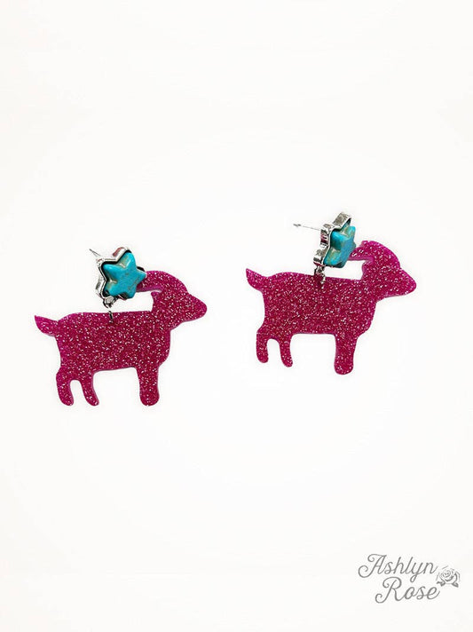 Acrylic Goat Drop Earrings in Pink
